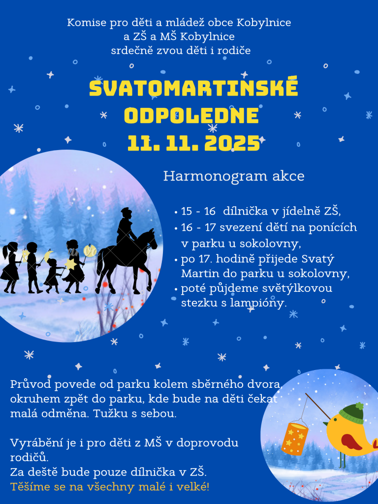 Komise pro děti a mládež a ZŠ a MŠ Kobylnice pořádají svatomartinské odpoledne v pondělí 11. 11. 2025.